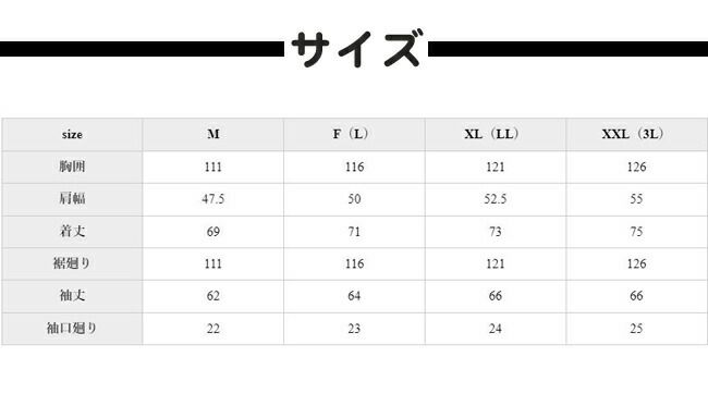 サイズ:M、F(L)、XL(LL)、XXL(3L)