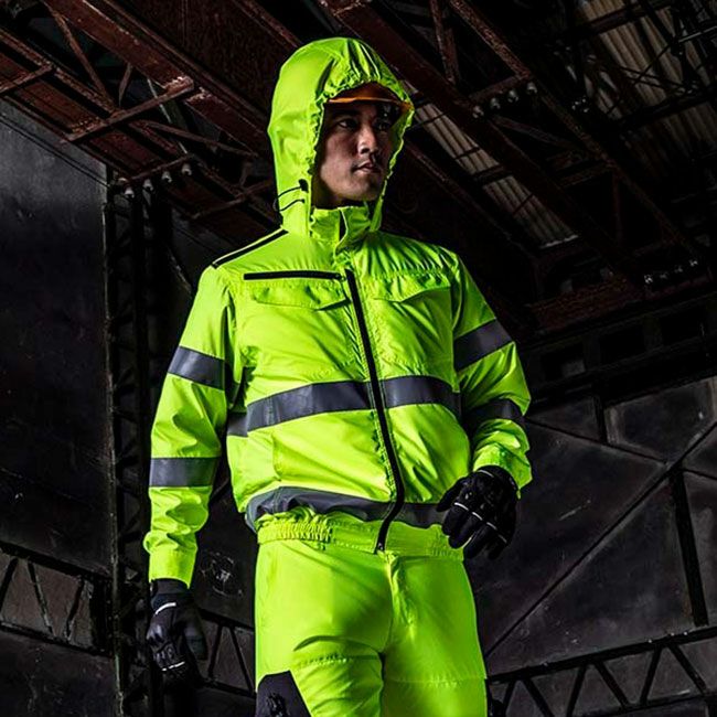 発色性の良い蛍光国産生地を使用し、軽量かつ高品質の高視認再帰反射EFウェア。
