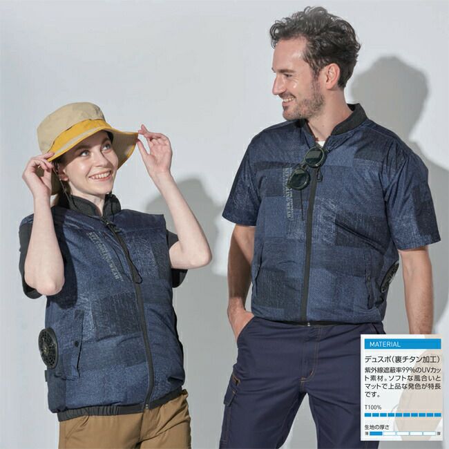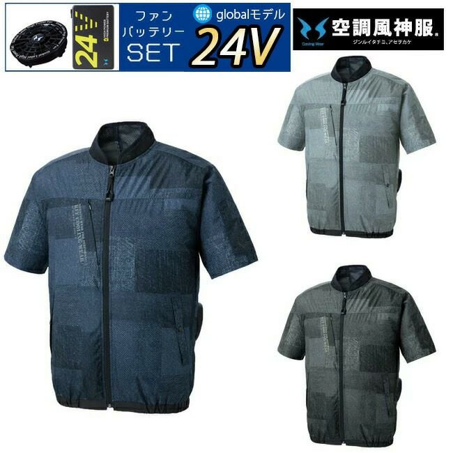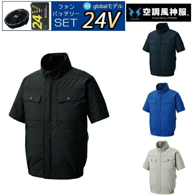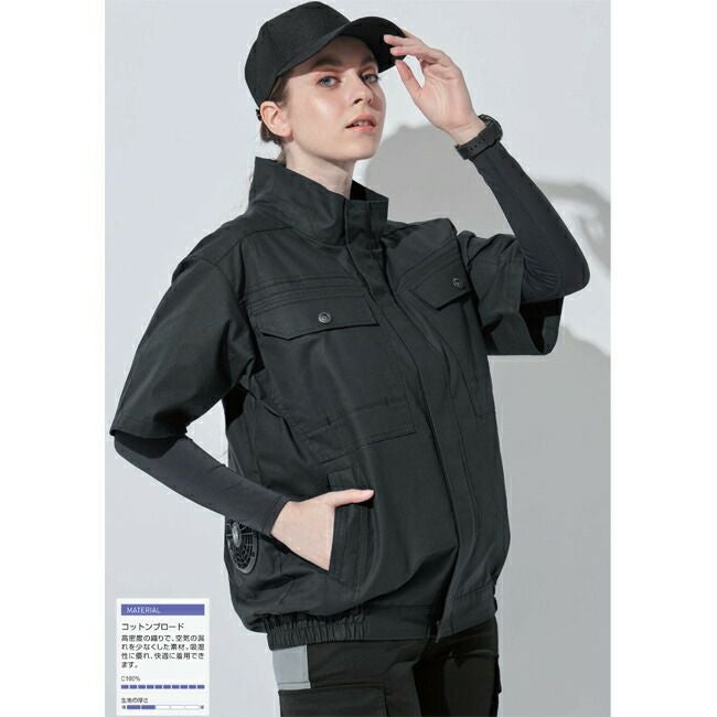 スタイリッシュ な 人気 シリーズ から 半袖 ブルゾン が 登場 【24V 2025年 GLOBALバッテリー&ファン付き】サンエス SUN-S 空調風神服 KF91450 半袖 ブルゾン コットン ブロード | 新モデル 新色 UVカット 胸 ポケット ベスト メッシュ マジック パターン 涼しい 夏 夏用 おしゃれ カジュアル メンズ レディース KU91450