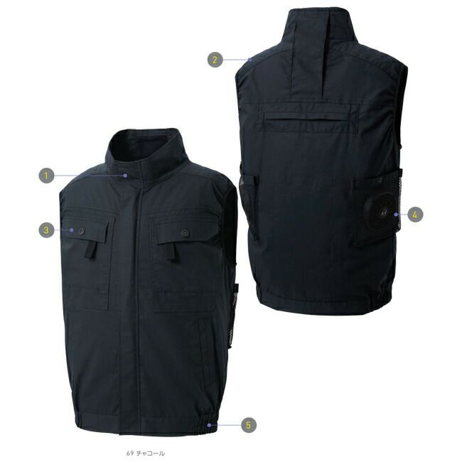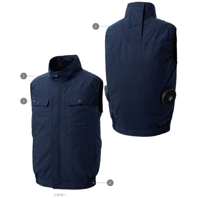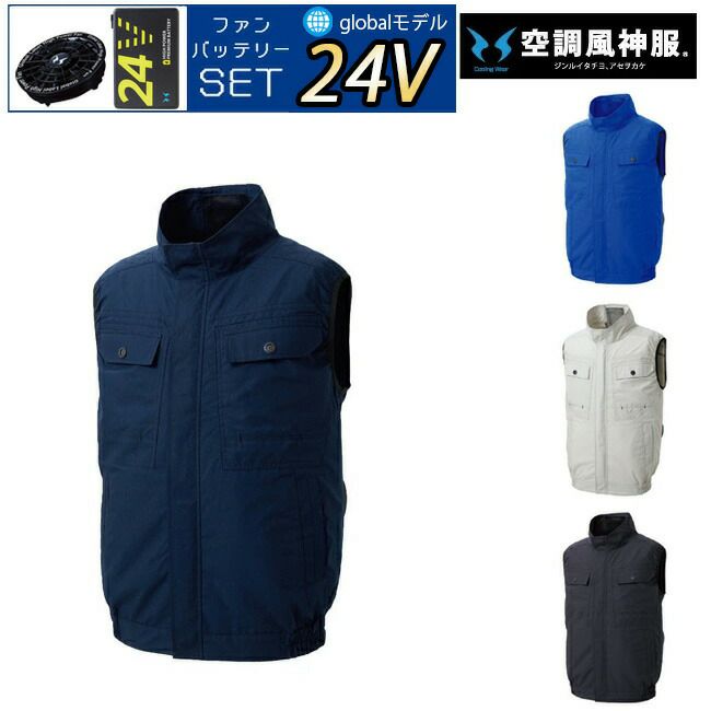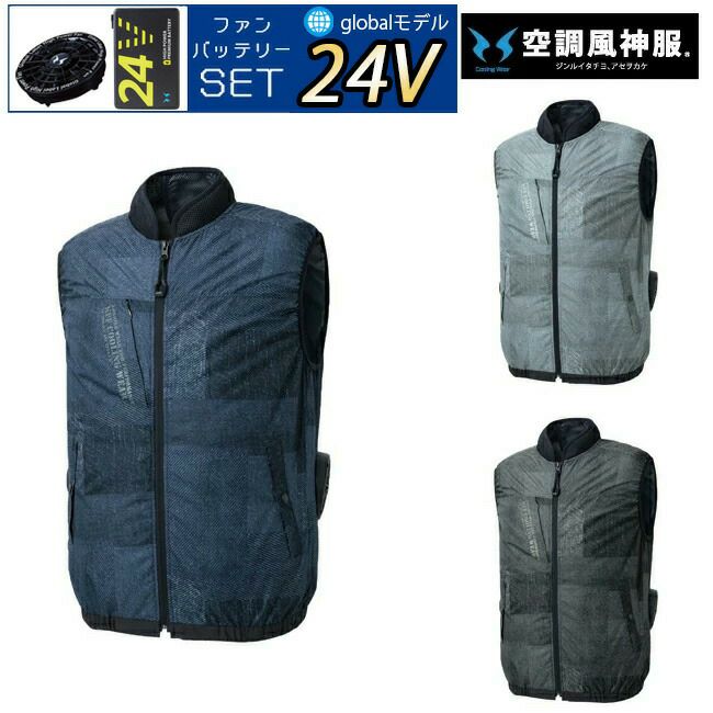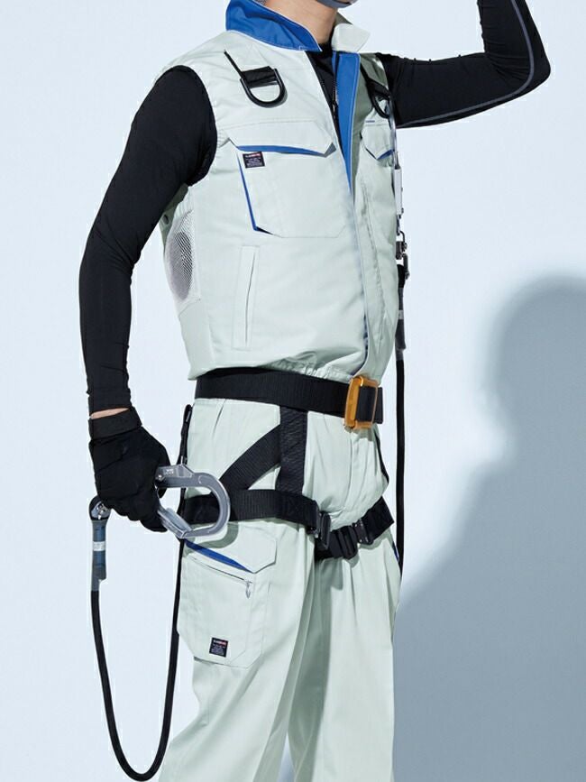 防風性の高い交織トロピカル素材 【24V 2025年 GLOBALバッテリー&ファン付き】サンエス SUN-S フルハーネス用 ベスト 空調風神服 【KF90479G】 | ファン クール 涼しい 夏 熱中症 猛暑 対策 夏用 おしゃれ かっこいい カジュアル ワーク タウン メンズ レディース 大きいサイズ 大サイズ KU90479G