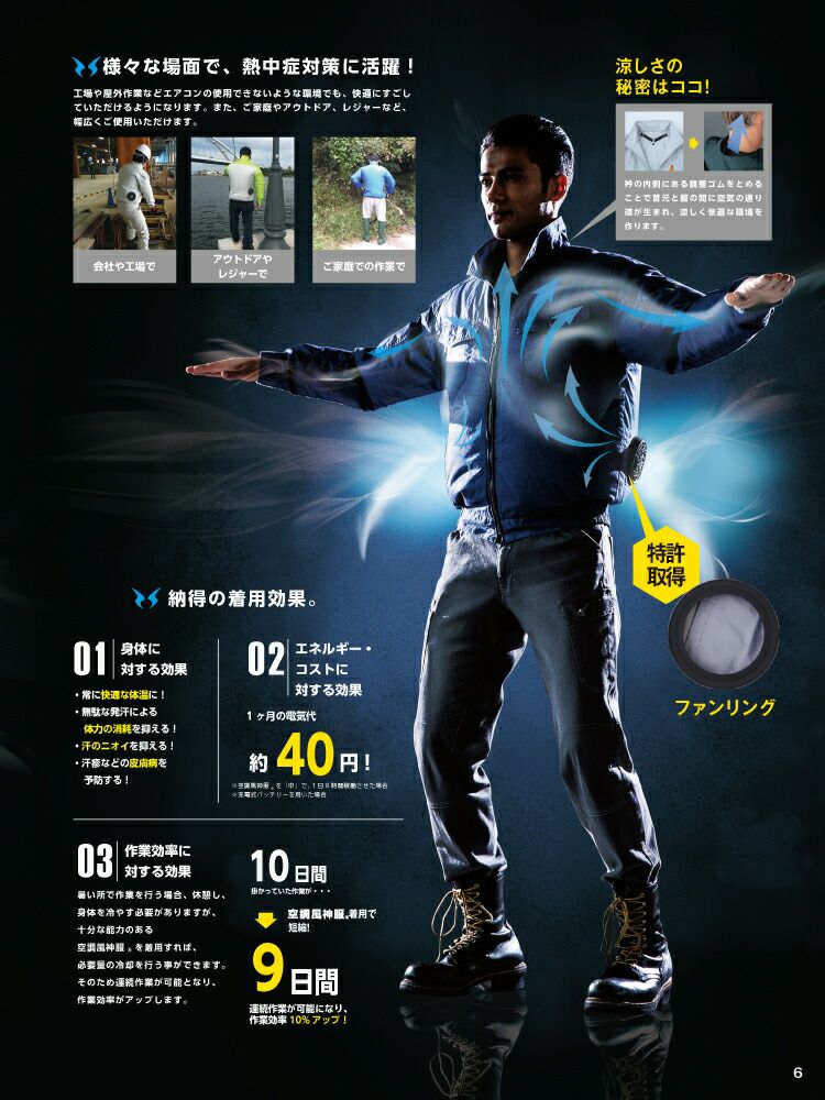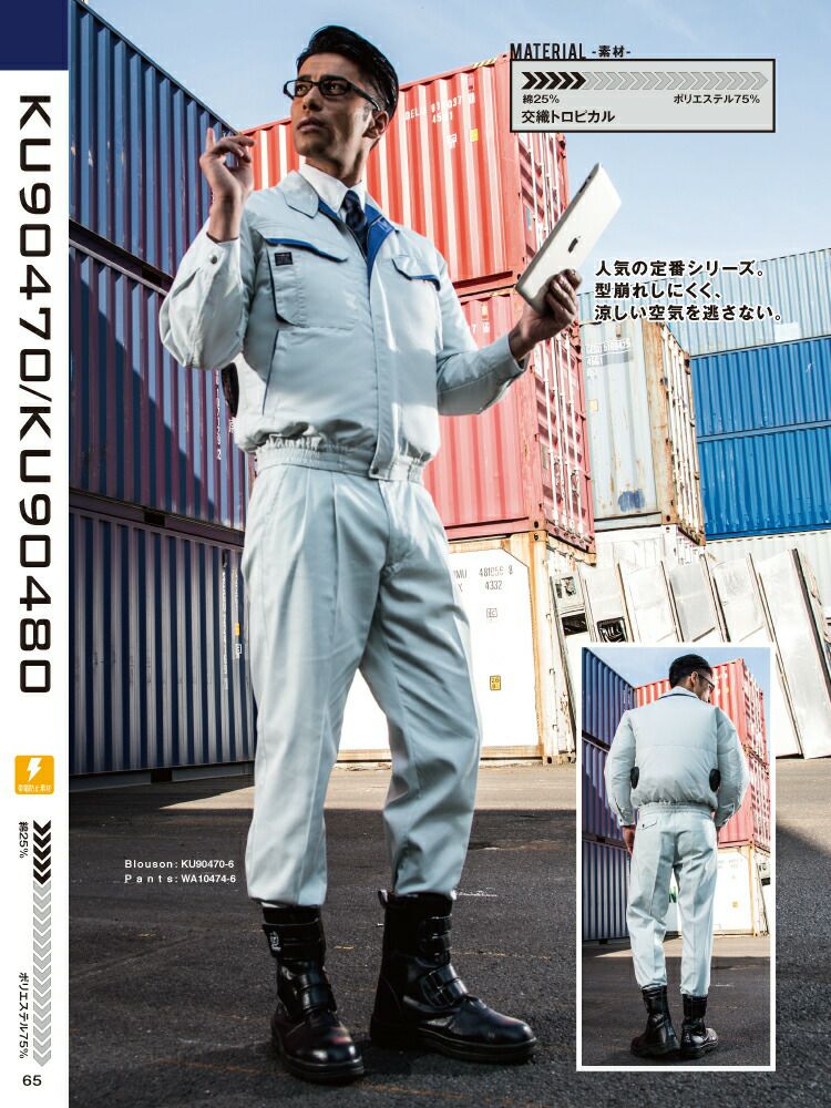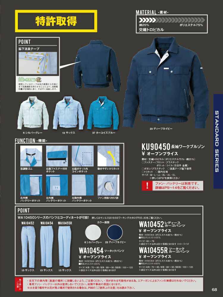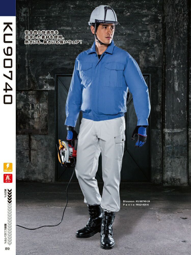 動きやすく型崩れしにくい素材を使用!汗をかいても匂わず、涼しさキープ! 【24V 2025年 GLOBALバッテリー&ファン付き】サンエス SUN-S 空調 風神服 KF90450 長袖ワークブルゾン帯電防止素材 WA10470シリーズパンツ対応 | 風神 単品 静電 帯電 防止 カジュアル おしゃれ かっこいい 和 KU90450