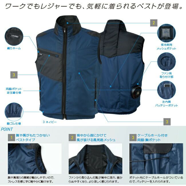 ワーク でも レジャー でも 気軽 に 着られる ベスト タイプ が 登場 【24V 2025年 GLOBALバッテリー&ファン付き】サンエス SUN-S 空調風神服 KF95990 ベスト ジャケット | 新モデル 新色 UVカット 胸 ポケット ベスト メッシュ マジック パターン 涼しい 夏 夏用 おしゃれ カジュアル メンズ レディース KU95990