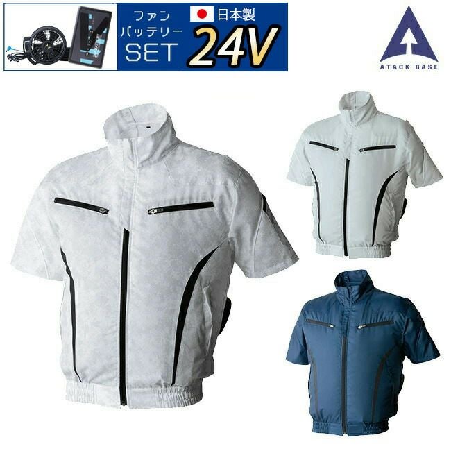 全方位 の シルエット を ショルダー パイピング で 締めた スポーティー な 半袖 ブルゾン 【24V 2025年 日本製バッテリー&ファン付き】アタックベース 空調風神服 【The tough 065】 極涼 半袖 ブルゾン | 新モデル 新色 大きいサイズ 防水 無地 涼しい クール 熱中症 夏 夏用 おしゃれ カジュアル アウトドア メンズ レディース