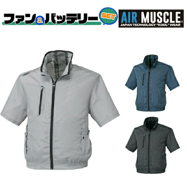 裾上がり 防止 ループ 付き スマホ ペットボトル なども 収納 できる マルチ ポケット 付き 【2022年ファン&バッテリーセット付】コーコス 空調風神服G-5210 エアーマッスル 半袖 ジャケット GLADIATOR