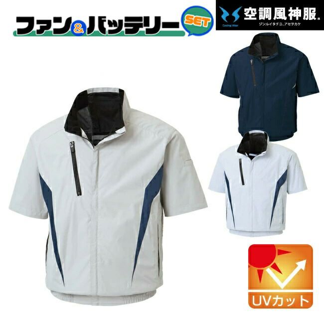 紫外線 赤外線 を カット する 裏チタン 加工 で 快適 な 風神ベスト 対応 シリーズ 【2022年ファン&バッテリーセット付】サンエス SUN-S 空調風神服KF100 チタン加工 半袖 ブルゾン