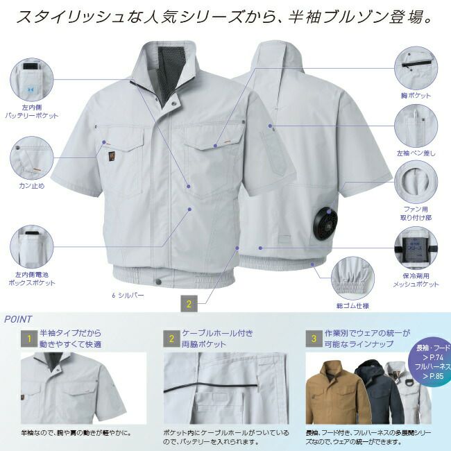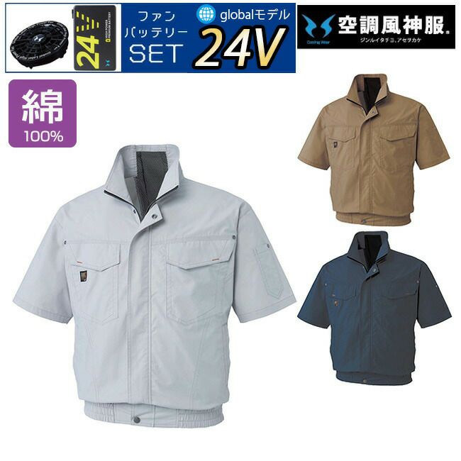 スタイリッシュ な 人気 シリーズ から 半袖 ブルゾン が 登場 【24V 2025年 GLOBALバッテリー&ファン付き】サンエス SUN-S 空調風神服 KF91450 半袖 ブルゾン コットン ブロード | 新モデル 新色 UVカット 胸 ポケット ベスト メッシュ マジック パターン 涼しい 夏 夏用 おしゃれ カジュアル メンズ レディース KU91450