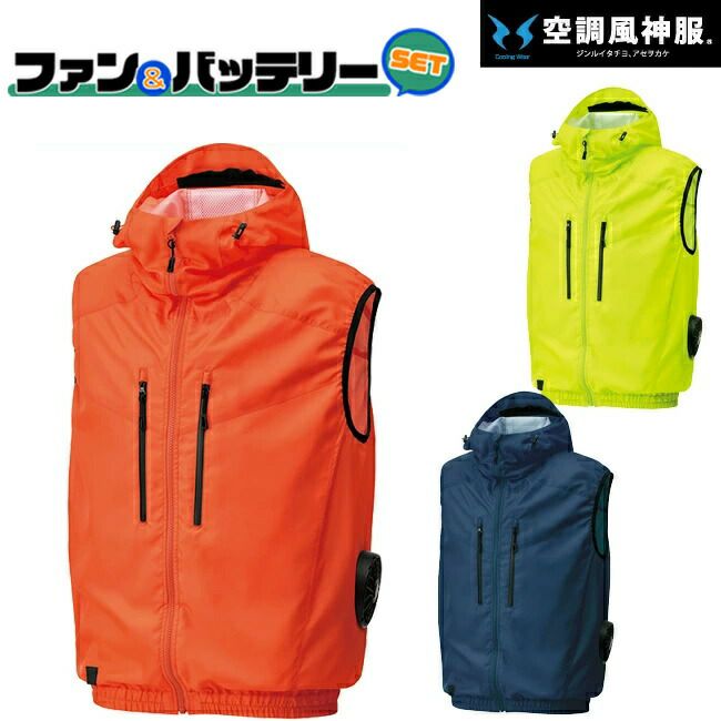 涼気 が 行きわたる 高襟 仕様 、 フォークリフト 向け ベスト 【2022年ファン&バッテリーセット付】サンエス SUN-S 空調風神服 KF92112 半袖 ブルゾン KU92112