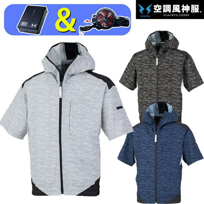 ペインターアーティストのMHAK(マーク)と空調風神服がコラボ! 【2022年 ファン&バッテリーセット付き】サンエス SUN-S フード付き 半袖 空調風神服 【MK-200】