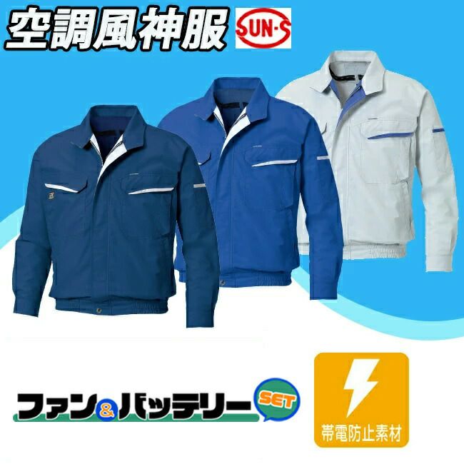 型崩れしにくく、涼しい空気を逃がさない!大人気の定番 ! 【2022年ファン&バッテリーセット付】サンエス SUN-S 空調 風神服KF90470 長袖 ワークブルゾン帯電防止素材