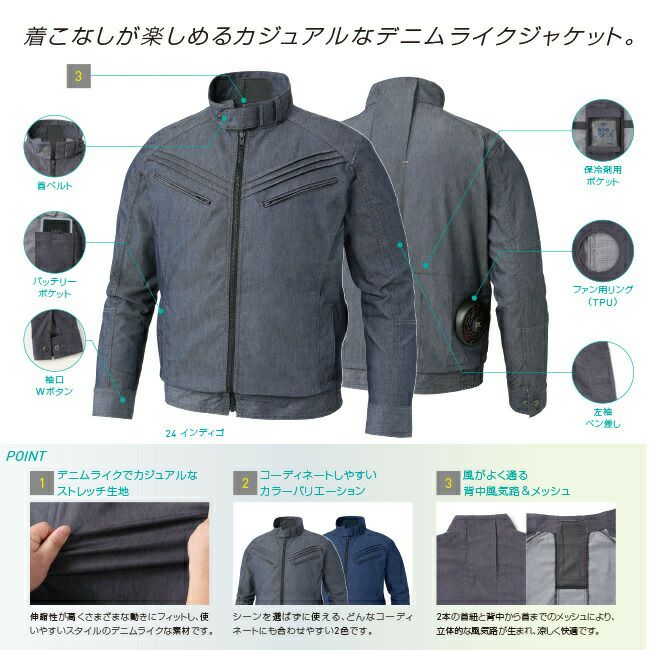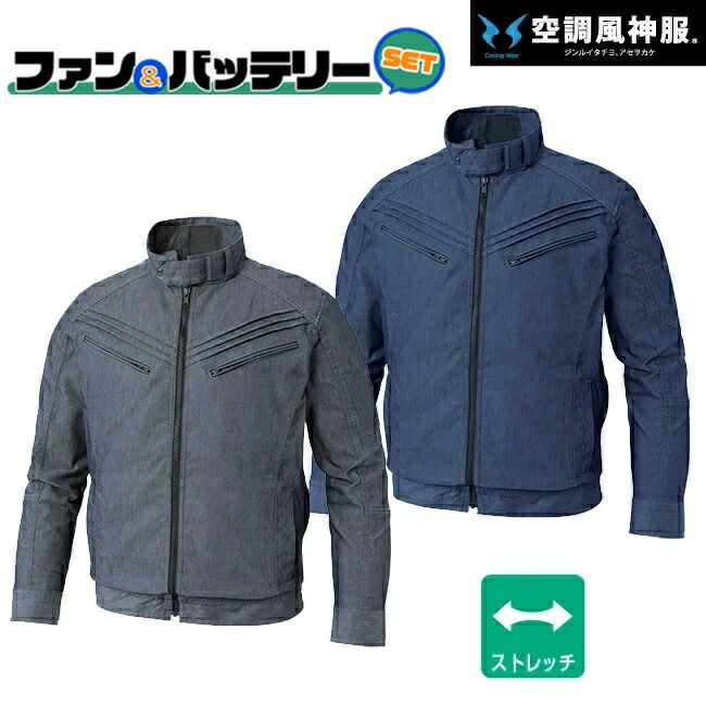着こなし が 楽しめる カジュアル な デニム ライク ジャケット 【2022年ファン&バッテリーセット付】サンエス SUN-S 空調風神服KF94900 長袖 ブルゾン