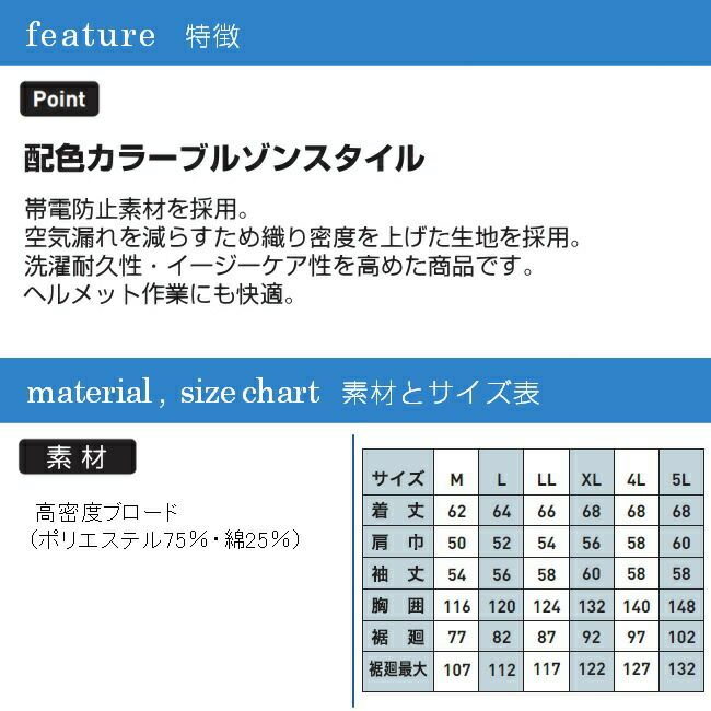 帯電防止素材を採用。洗濯耐久性のある高密度ブロード素材。