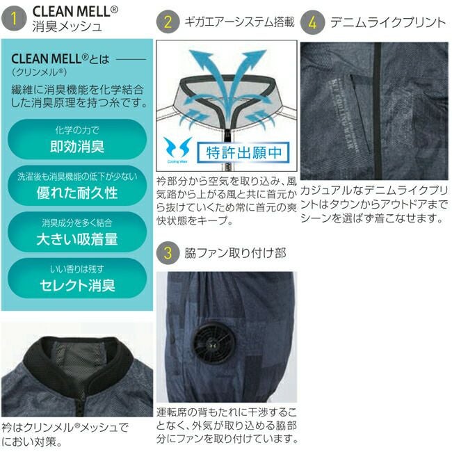他の画像を見る 衿のメッシュから風が通る「ギガエアーシステム」採用 デニムライクプリントのアウトドアスタイルウェア 【24V 2025年 日本製バッテリー&ファン付き】空調風神服 sun-s サンエス 空調ウェア ショートスリーブジャケット KF92440 定価 オープン価格 販売価格 ¥ 29,260 税込 在庫切れ 詳細を見る お気に入りに登録する
