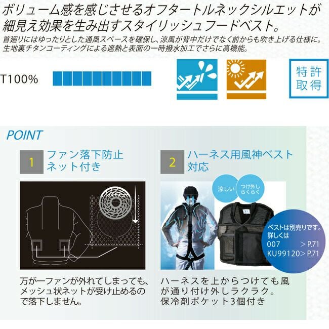 他の画像を見る 裏チタン加工 幅広く活用できる万能ファンウェア 【24V 2025年 日本製バッテリー&ファン付き】空調風神服 アタックベース 空調ウェア 服 【5540】The tough チタン フード ベスト | 夏 涼しい クール 空調 ウェア 服 作業着 夏場 対策 おしゃれ かっこいい カジュアル メンズ レディース フルセット 定価 オープン価格 販売価格 ¥ 30,448 税込 在庫切れ 詳細を見る お気に入りに登録する