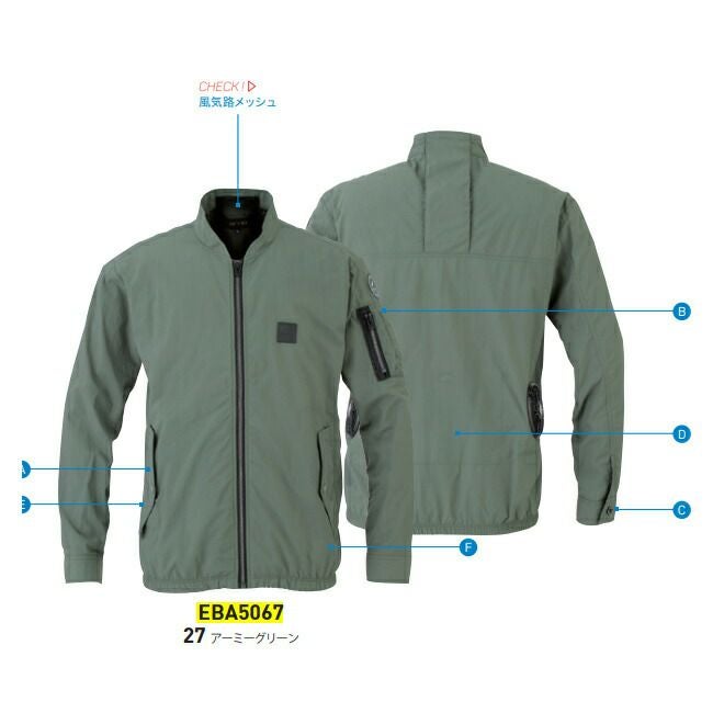 他の画像を見る 幅広いシーンで活躍するEFウェア 【24V 2025年 GLOBALバッテリー&ファン付き】ビッグボーン bigborn 空調風神服 長袖 ジャケット 【EBA5057】 サンエス SUN-S | ファン クール 涼しい 夏 熱中症 猛暑 対策 夏用 おしゃれ かっこいい カジュアル ワーク タウン 大きいサイズ 大サイズ 撥水 定価 オープン価格 販売価格 ¥ 24,420 税込 詳細を見る お気に入りに登録する