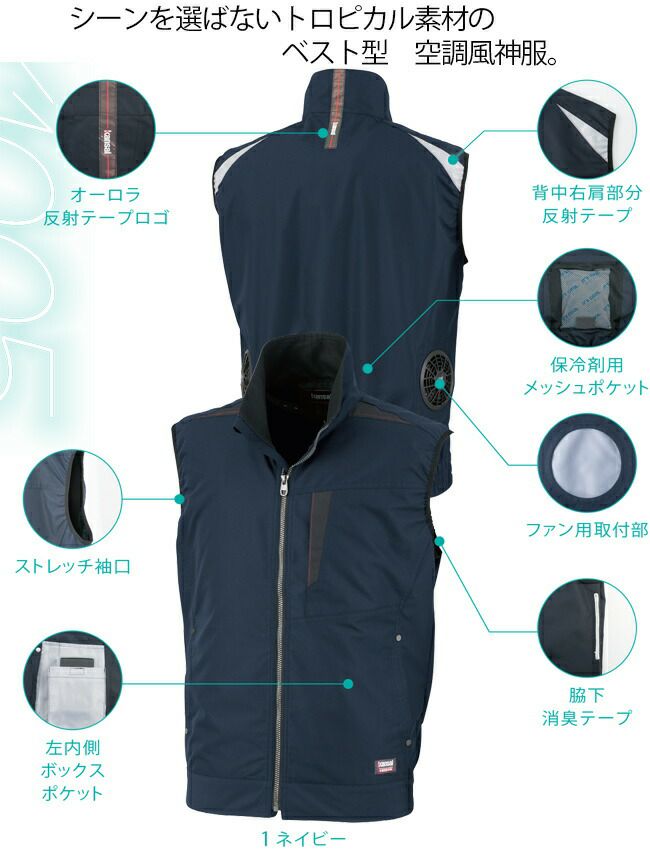 他の画像を見る シーン を 選ばない トロピカル 素材 の ベスト 型 【24V 2025年 GLOBALバッテリー&ファン付き】サンエス SUN-S kansai 空調風神服 K1005 ベスト カンサイ 綿混 空調 ブルゾン ジャケット | 新モデル 新色 メンズ レディース 夏 猛暑 酷暑 熱中症 涼しい 空調 おしゃれ カジュアル かっこいい 高所 フック 制電 定価 オープン価格 販売価格 ¥ 25,080 税込 詳細を見る お気に入りに登録する
