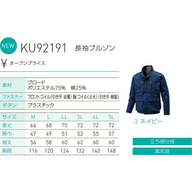 他の画像を見る モダン な デザイン が クール な ワーク カジュアル スタイル 【24V 2025年 GLOBALバッテリー&ファン付き】サンエス SUN-S 空調風神服 KF92191 長袖 ブルゾン KU92191 | 夏 涼しい クール 空調 ウェア 服 作業着 夏場 現場 作業 熱中症 対策 おしゃれ かっこいい カジュアル メンズ レディース フルセット 定価 オープン価格 販売価格 ¥ 25,740 税込 詳細を見る お気に入りに登録する