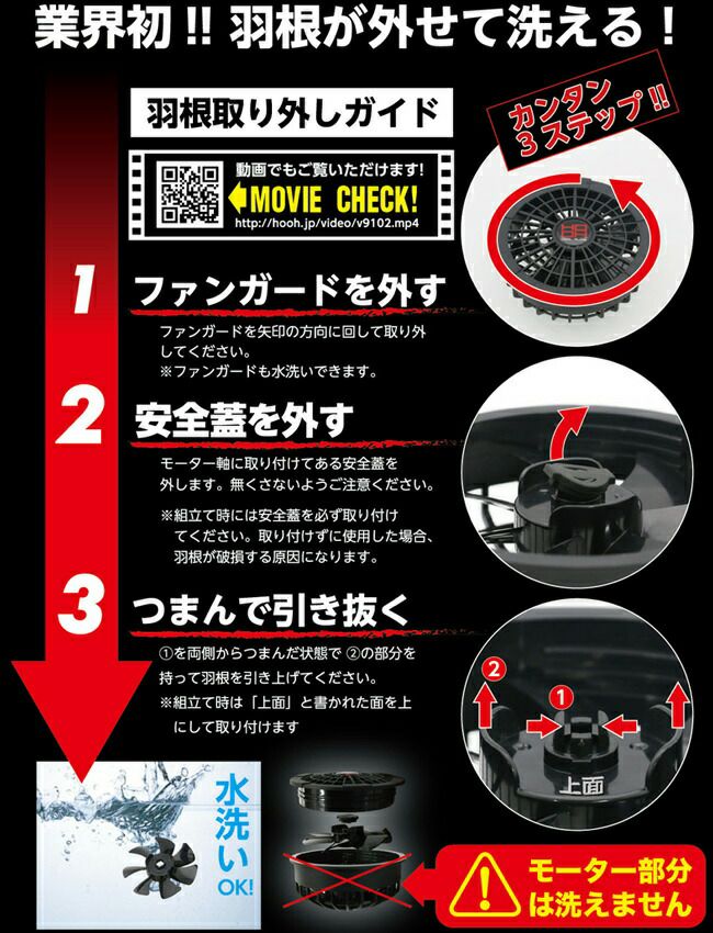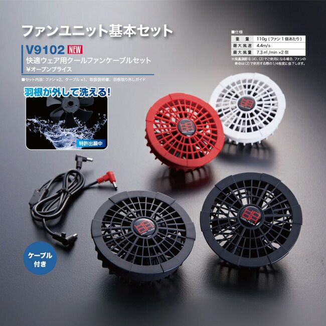 業界初 羽 が 外せて 洗える 快適ウェア 用 ファン&ケーブルセット 鳳凰 村上被服 快適ウェア ファン&ケーブルセット V9102