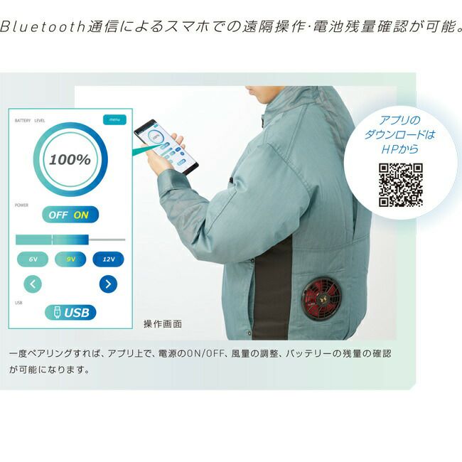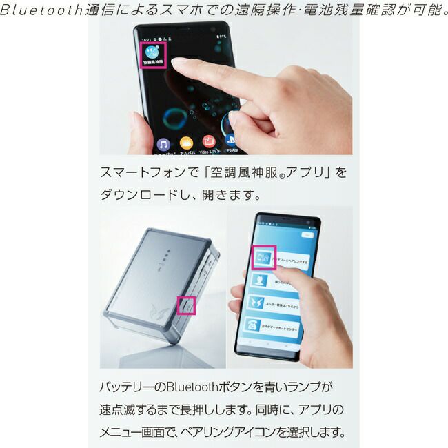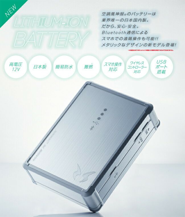 Bluetooth 通信 による スマホ での 遠隔操作 電池 残量 確認 が 可能 サンエス SUN-S 空調風神服 用 バッテリーセット 【RD9190J】