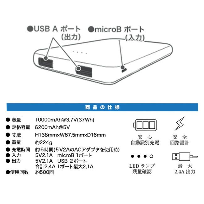 ●容量 10000mAh@3.7V(37Wh)