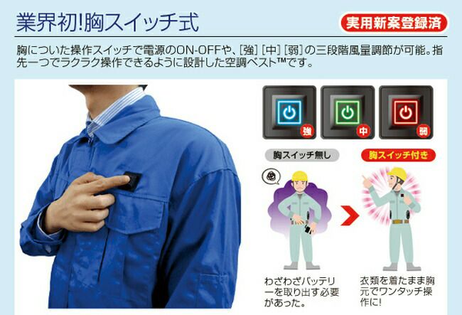 他の画像を見る 胸スイッチタイプが登場! BRAIN ブレイン 胸スイッチ 綿薄手100% 空調エアコン服ハーネス 服のみ BR-7000-1 販売価格 ¥ 9,466 税込 詳細を見る お気に入りに登録する