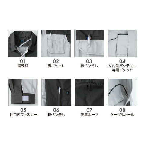 商品名  : 綿厚手脇下マチ付き空調服™ ファン・バッテリーセット