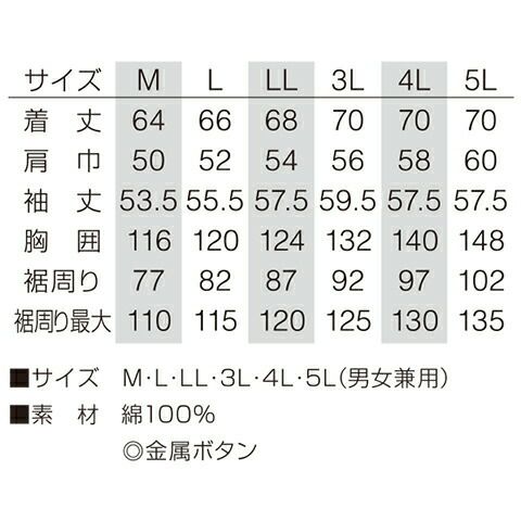 サイズ  : M・L・LL・3L・4L・5L(男女兼用)