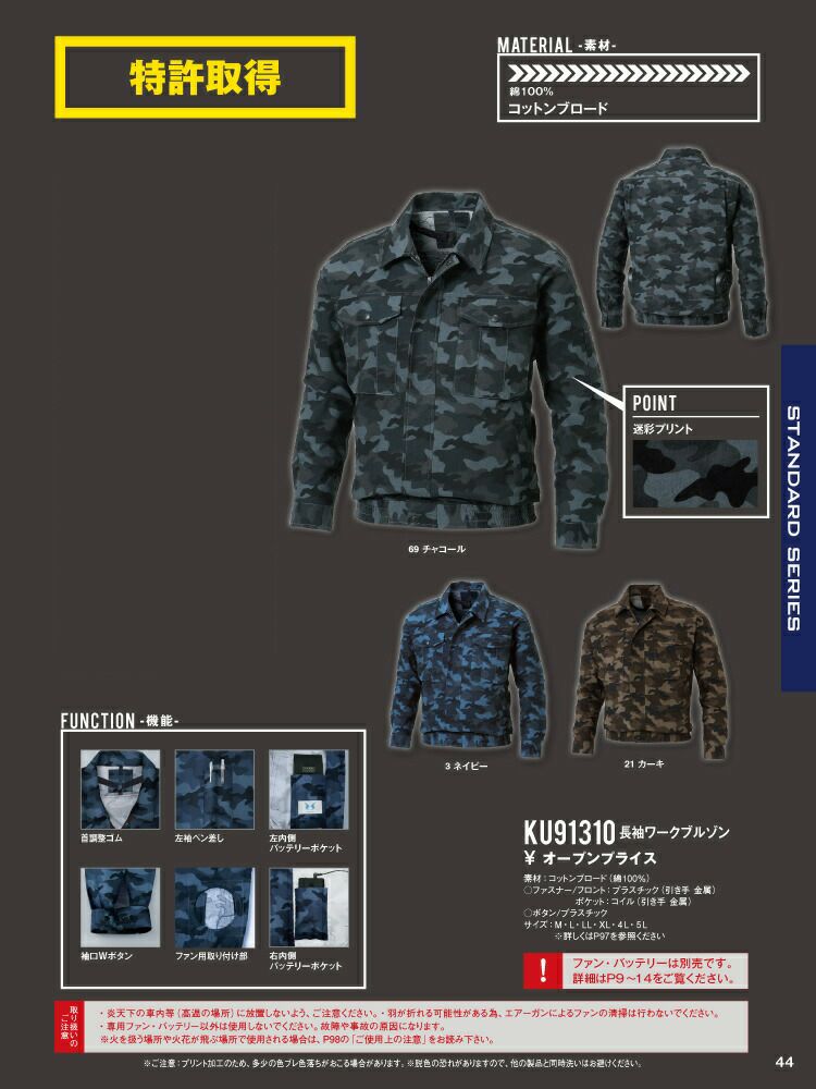 コットンブロードで肌触りバツグン!ミリタリースタイルでワイルドに着こなせ! サンエス SUN-S 空調 風神服 空調服 KU91310 長袖 ※ファン・バッテリー別売