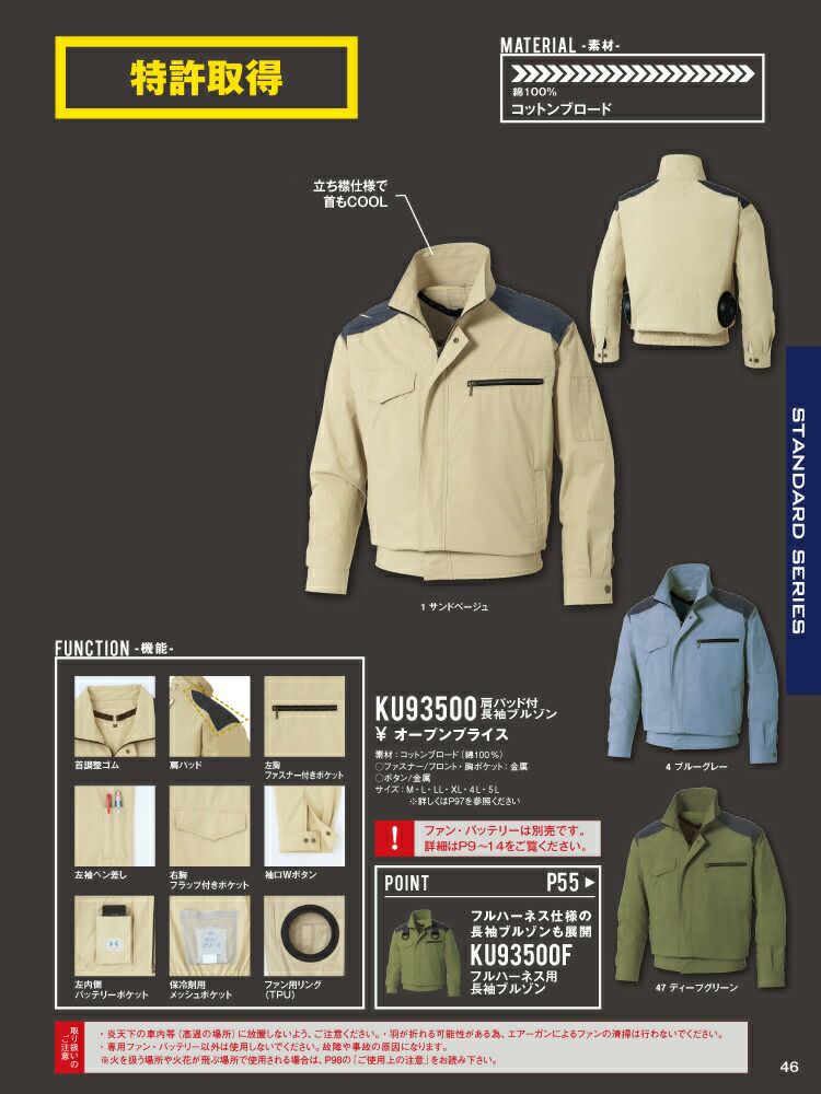 ハードな作業を耐え抜く、肩パッド付きブルゾン! サンエス SUN-S 空調 風神服 空調服 KU93500 肩パッド付き 長袖 ※ファン・バッテリー別売