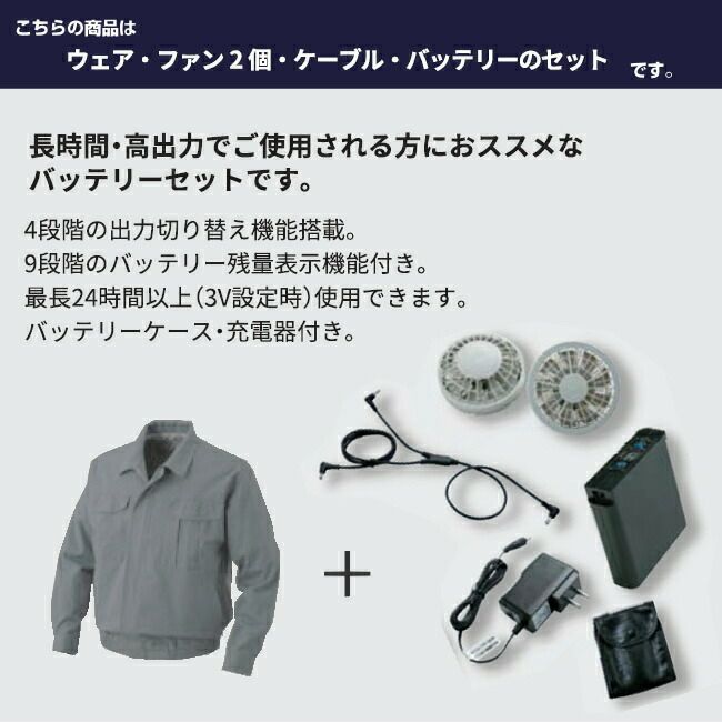 他の画像を見る 綿100% 長袖 タフ 厚手 【空調服R】綿厚手脇下マチ付き 空調服 ファン・バッテリーセット 品番KU91920 販売価格 ¥ 22,440 税込 カートに入れる お気に入りに登録する