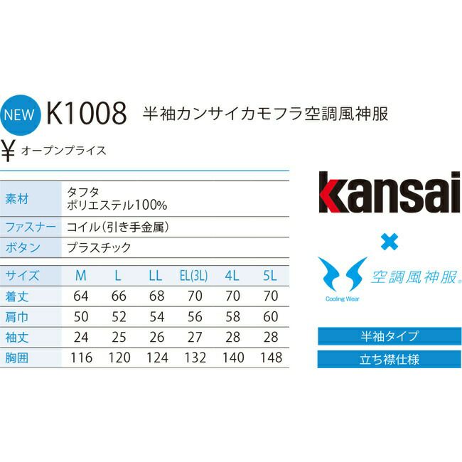 kansai と 共同開発 した スタイリッシュ な カモフラ ブルゾン サンエス SUN-S kansai 空調風神服 空調服 K1008 カンサイ カモフラ 半袖 ブルゾン ※ ファン バッテリー別売