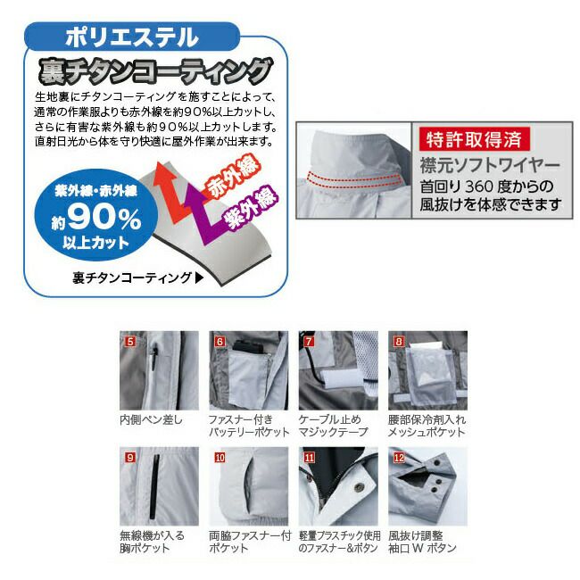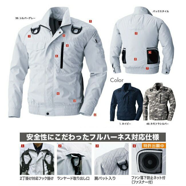 フルハーネス 対応 裏 チタン コーティング で 紫外線 赤外線 を 90% 以上 カット 2丁掛けフック対応 ランヤード取り出し口 ファン落下防止ネット付き 鳳凰 村上被服 快適ウェア 【V8301】 フルハーネス 対応 長袖 ブルゾン ※ ファン&バッテリー別売