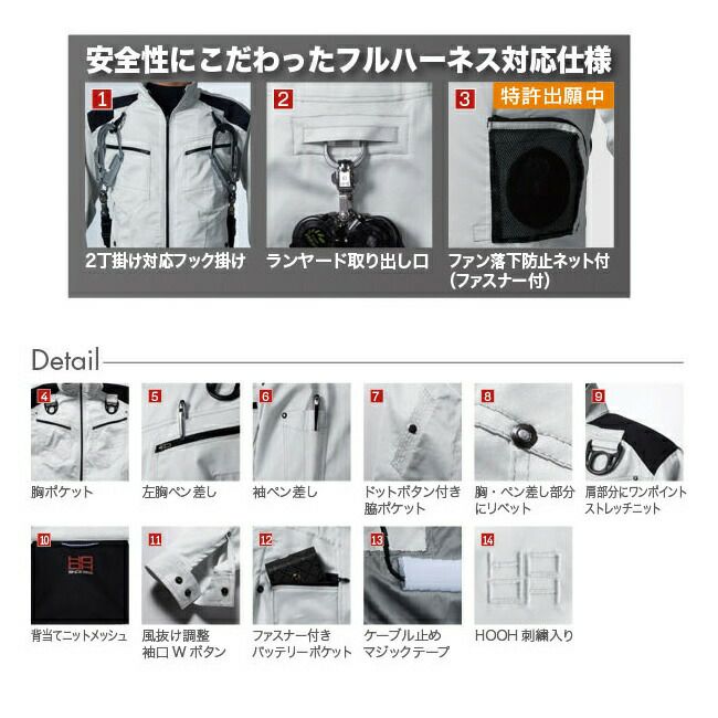 フルハーネス 対応 スタイル 機能性 に こだわった ストレッチ 素材 の 快適 ウェア 吸湿 放湿 吸汗 速乾 UVケア 機能付き 鳳凰 村上被服 快適ウェア 【V9501】 フルハーネス 対応 長袖 ブルゾン ※ ファン&バッテリー別売