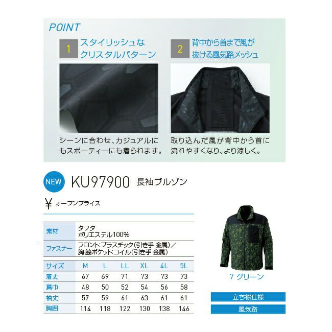 他の画像を見る シャープ な クリスタル パターン で アーバン アウトドア に 着こなし可能 サンエス SUN-S 空調風神服 空調服 KU97900 長袖 ブルゾン ※ ファン バッテリー別売 販売価格 ¥ 5,390 税込 在庫切れ カートに入れる お気に入りに登録する