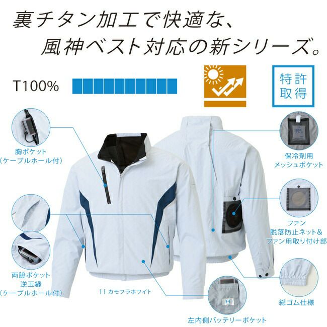 他の画像を見る 紫外線 赤外線 を カット する 裏チタン 加工 で 快適 な 風神ベスト 対応 シリーズ 【12Vスターターキット ファン&バッテリー付き】サンエス SUN-S 空調風神服 KF101 チタン加工 長袖 ブルゾン | 新モデル 新色 UVカット メンズ レディース 夏 猛暑 酷暑 熱中症 涼しい 空調 おしゃれ カジュアル かっこいい カモフラ 定価 オープン価格 販売価格 ¥ 23,770 税込 詳細を見る お気に入りに登録する