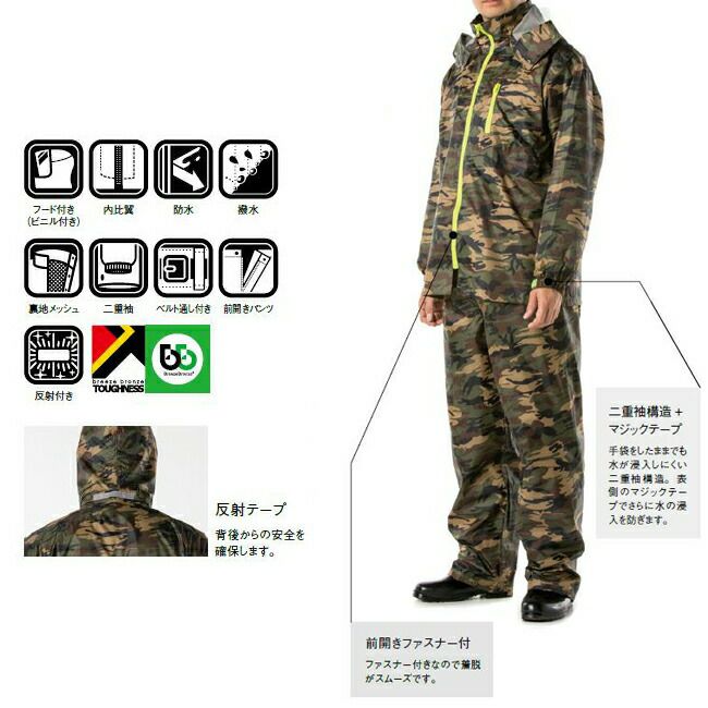 他の画像を見る カラフル定番イージーレインに続く、カジュアルでも使える迷彩柄レインウェア。 コヤナギ CAMO カモフラレイン【CAMO】 販売価格 ¥ 5,277 税込 カートに入れる お気に入りに登録する