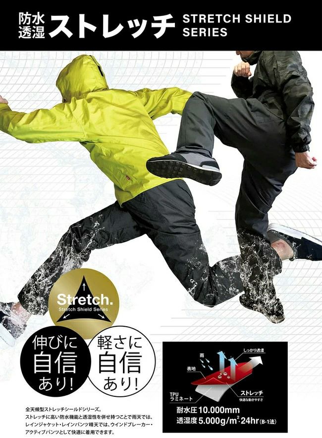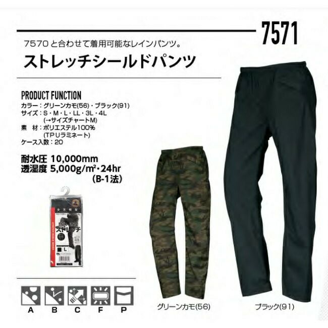他の画像を見る ストレッチ 防水性 透湿性 レインパンツ 耐水圧10000mm 透湿性5000 カジメイク Kajimeiku 7571 ストレッチシールドレインパンツ 販売価格 ¥ 2,817 税込 カートに入れる お気に入りに登録する