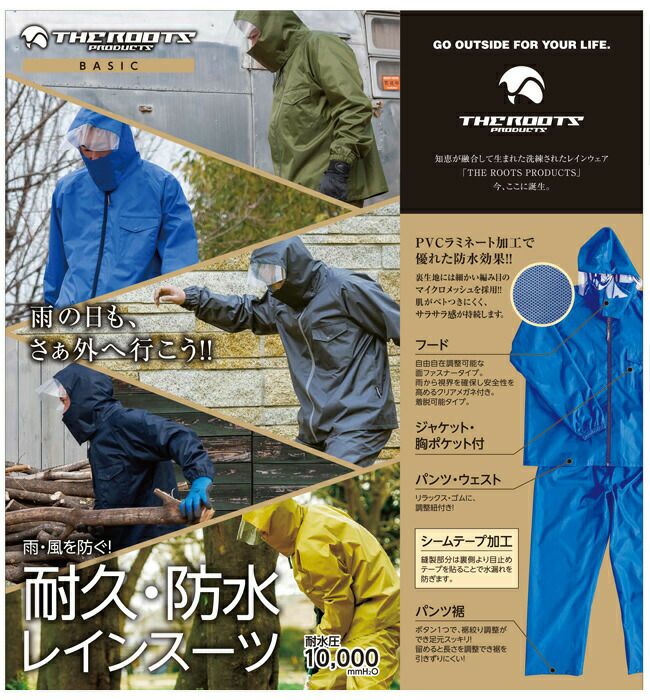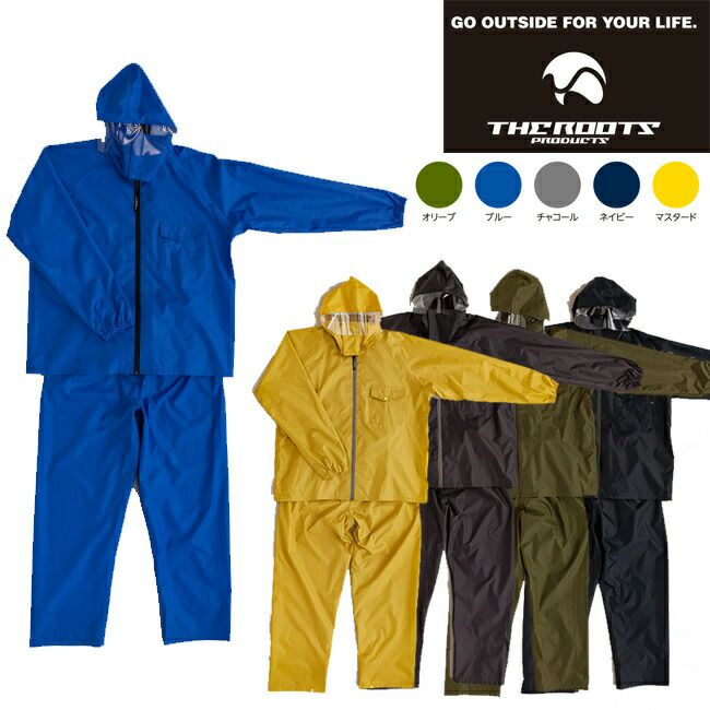 耐水圧10,000mm/H2O 雨の日 でも 快適 に動ける リーズナブル レイン ウェア 上下 セット テープ 付き で 水漏れ を 防げる シームテープ 加工 付き 耐久 防水 レインスーツ 上下 THE ROOTS ARC-100