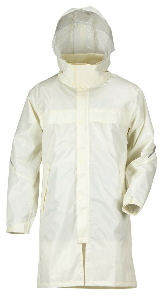 シンプルなデザインでも安全性と防水性は折り紙つき。フードは被った時の視界を妨げないよう、前方部分はクリア素材で作ってあります。さらにヘルメットをかぶったままかぶれるようにボタンが二段階調節できるのもポイントです。
