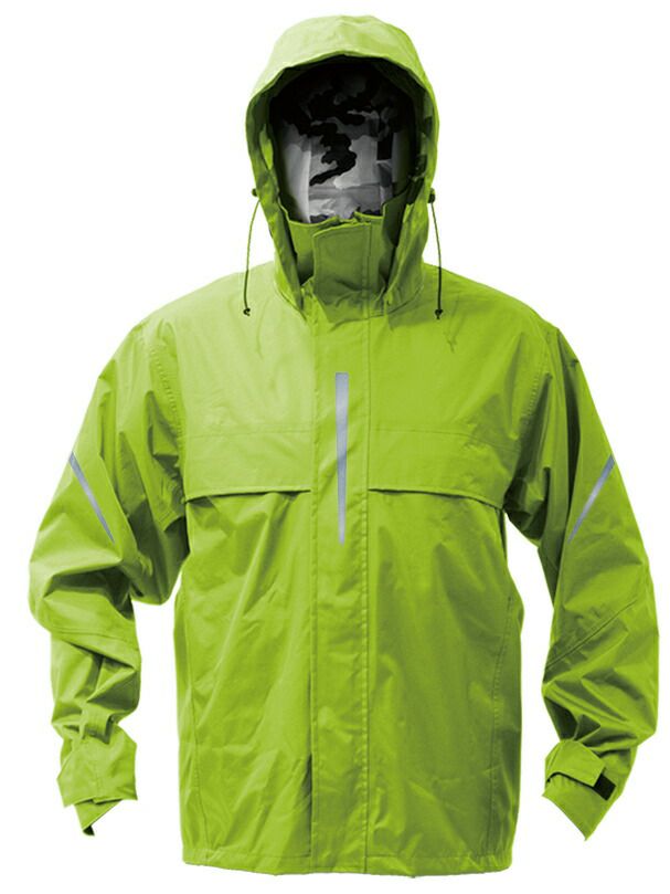 全方位にベンチレーションとリフレクターを配置したレインスーツです。