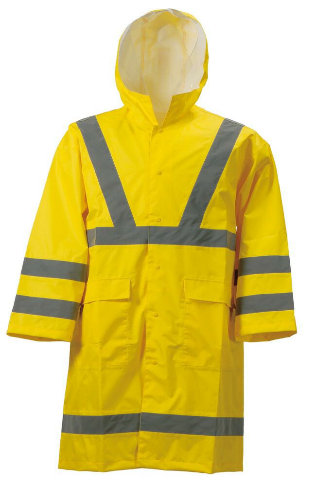 道路工事や交通誘導、警備や災害の復旧現場など危険を伴う作業用に安全性を考慮して視認性の良いレインスーツです。