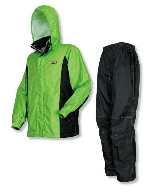 生地にムレを緩和する透湿防水素材を使用した、ツートンカラーのレインスーツ。