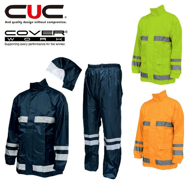 CUC COVER WORK セーフティーレインスーツスクード F-8400 【cw2381】【cw2382】【cw2383】 | メンズ 防水 レインウェア レインスーツ 上下セット 反射材 現場 夜間 バイク 自転車 雨具 合羽 梅雨 雨 雨の日