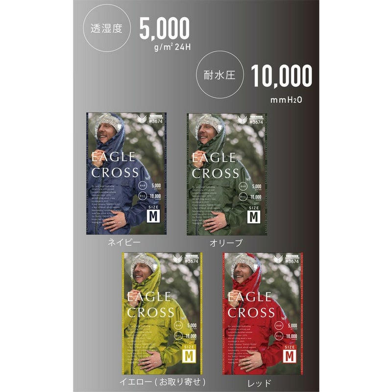他の画像を見る 耐水圧 10000mm 透湿度 5000g/m2/24h 汗ムレを防ぐ 裏メッシュ仕様 【上下セット】 レインウェア イーグルクロス #3674 販売価格 ¥ 2,800 税込 カートに入れる お気に入りに登録する