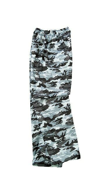迷彩柄を取り入れたナイロン素材のパンツです。