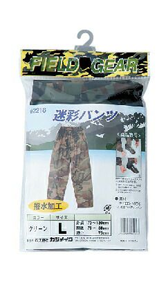 素材は汚れが付きにくいナイロン100%にはっ水加工。2217の迷彩ヤッケとセットで着用していただけます。