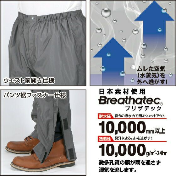東レコーテックスの防水透湿素材ブリザテックを使用した高機能レインパンツ。 耐水圧10000mm 透湿性10000g カジメイク Kajimeiku No.7730 レインウェア KJレインパンツEX