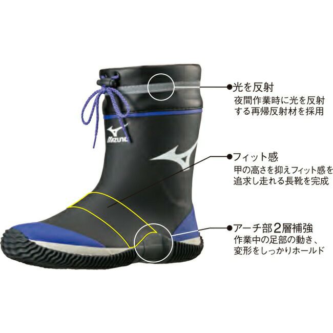 ■ミズノの「スポーツシューズ」の型を長靴に採用し、フィット感を向上。