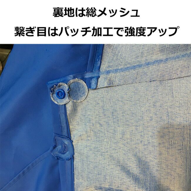 内側にメッシュを貼って、汗でまとわりつくレインウェアの不快さを軽減。