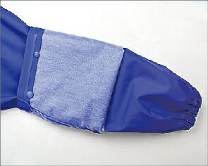 袖口は手袋をした際も雨が浸入しにくいように、深めの二重袖に仕上げました。内側のゴムと外側のスナップボタンで、フィット感を高めています。