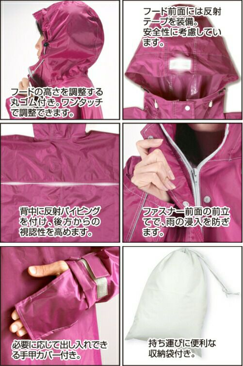 男女兼用フリーサイズのレインポンチョなのでご家族で着回しができるのも経済的です。 ゆったりとした着心地なので、中にカバンを担ぐこともできます。